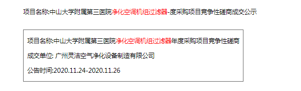 恭喜我司中標中山大學附屬第三醫院淨化空調(diào)機組過濾器年度服務